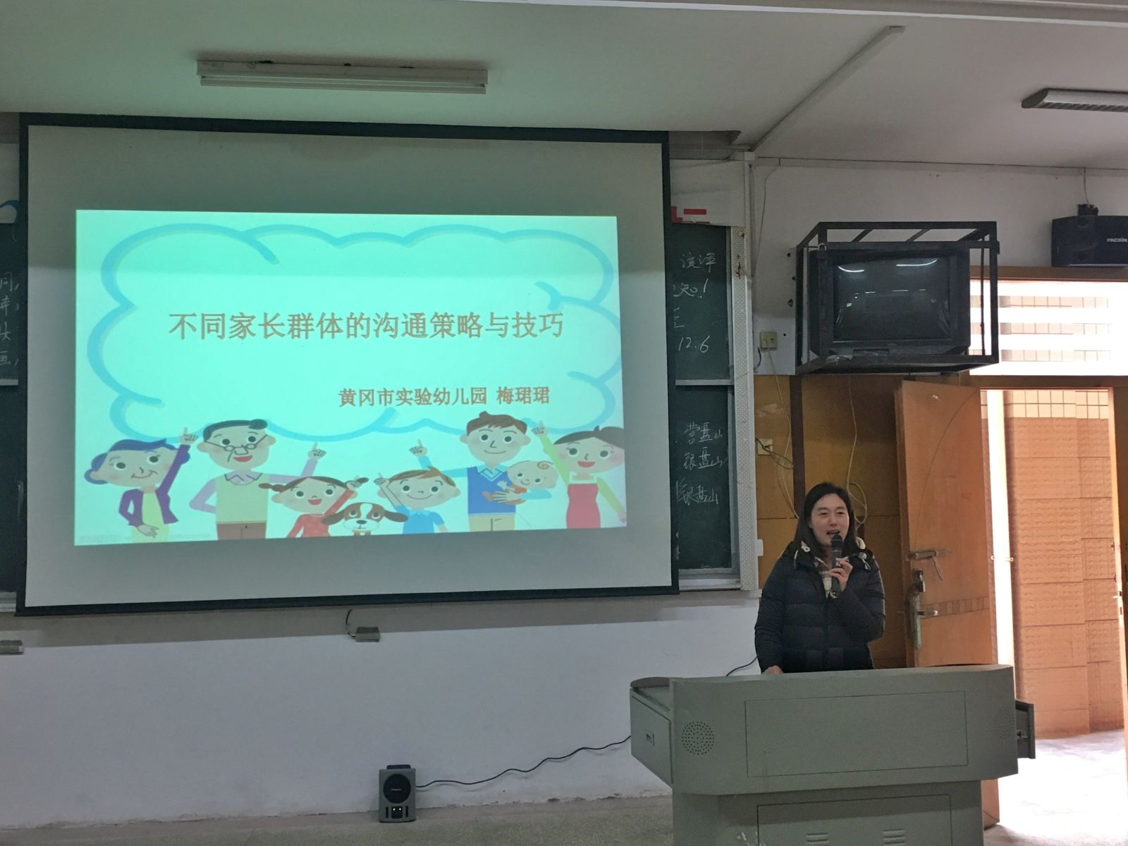 (通讯员:林恒照)2017年12月7日14时教育科学与技术公司在博学楼B02教室,举行了《不同家长群体的沟通策略与技巧》专题讲座。黄冈市实验幼儿园西湖三路园区梅珺珺老师为本次讲座主讲人,学前教育专业2015级全体同学认真听取了讲座并参与了讨论。