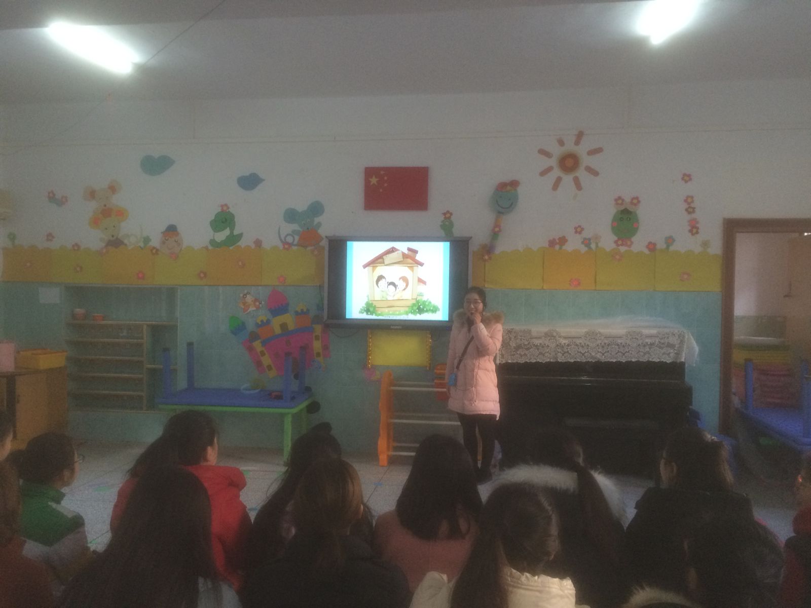 教科院的童三红副经理和实习带队袁芳老师,与黄冈市市幼儿园杨慧玲园长、郑爱民副园长、陈红燕主任以及全体实习生一起全程观摩了4节实习汇报课。分别是谢婵娟同学的《我家是动物园》(大班)、杨芳同学的《蚊子死光光》(小班)、袁烨同学的《小鸡找食物》(小班)、王晓彤同学的《蜜蜂和小熊》(中班)。陈红燕主任对实习生的汇报课进行了精彩的点评。大家一致认为汇报课生动有趣、科学规范,设计合理,体现了我们实习生的良好素养。