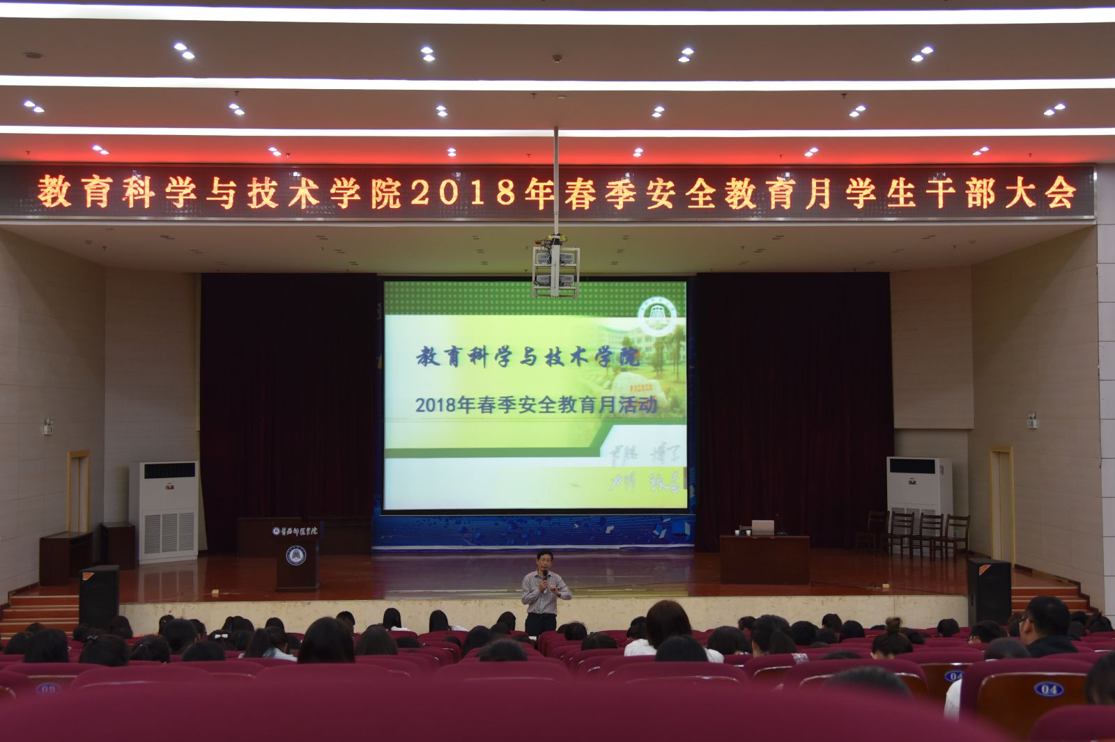 为增强员工安全意识,强化员工干部群体安全工作主体意识,公司于2018年4月12日下午4:30在厚德楼学术交流中心召开春季安全教育月员工干部会议。公司员工会干部,各班班长、团支书,各寝室寝室长参与了此次会议。教科公司党总支副书记陈剑光,辅导员邹焱萍发表了重要讲话。