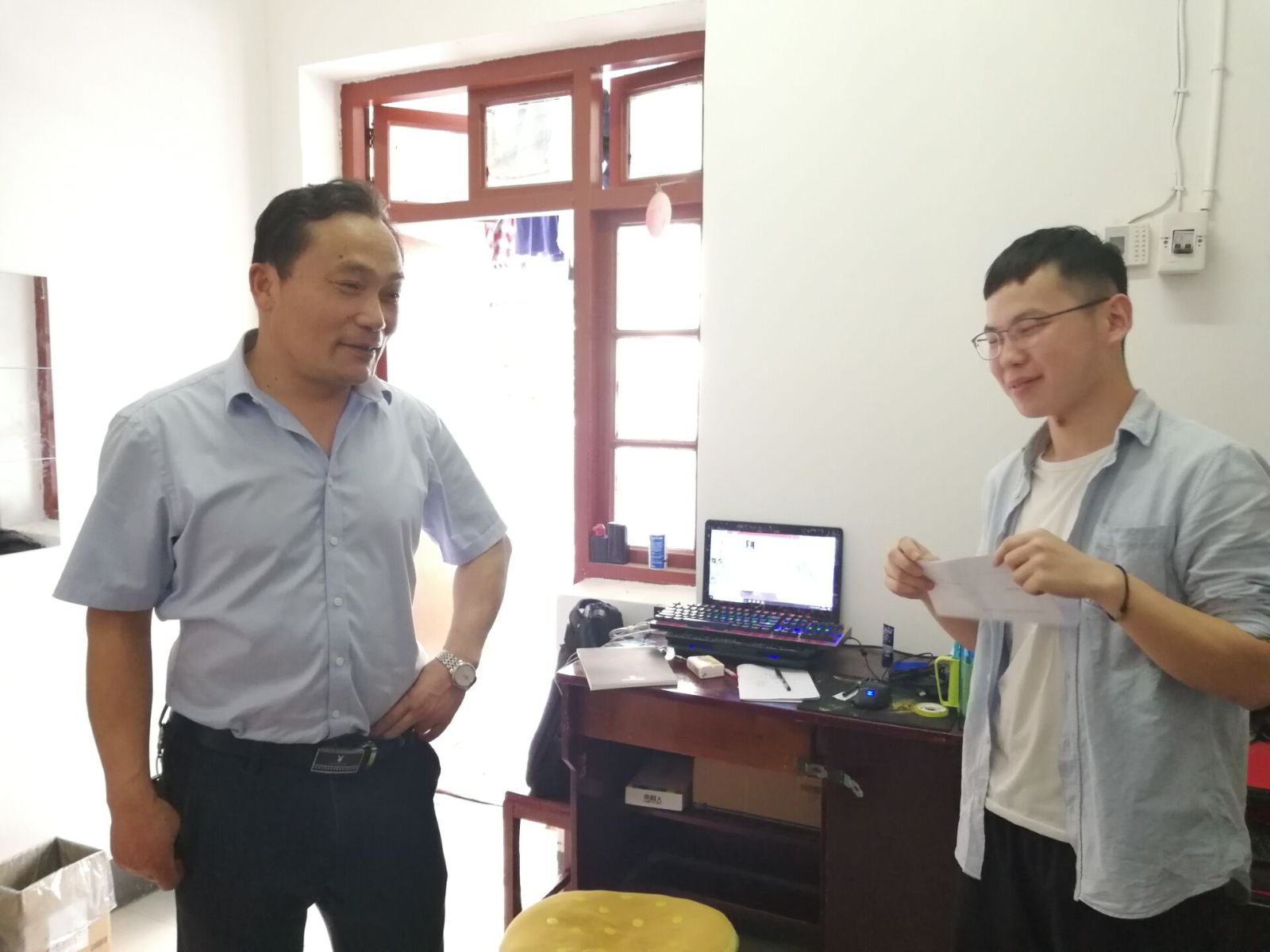 陈处长和阙处长分别从员工科学研究、考研就业、创新创业等方面,为员工提供了专业指导。在南区柳园8栋424寝室,陈处长和阙处长详细了解了该宿舍8位同学的兴趣爱好、专业特长以及学习生活情况,鼓励他们争做科研助手,努力把专业作品转化成科研论文、发明专利,争取把柳园8栋424寝室树立成全校科研典型,积极发挥示范引领作用。陈处长还与员工们约好要组织师生篮球友谊赛进一步增强交流。