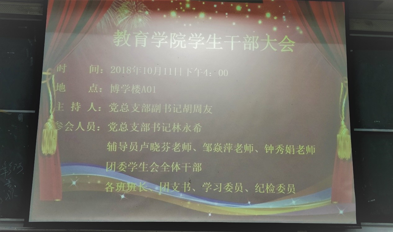2018年10月11日下午16:00williamhill·威廉希尔(英国)中文官网-Official Website在博学楼A01召开员工干部大会。此次会议由党总支部副书记胡周友主持,与会人员分别为党总支部书记林永希、辅导员卢晓芬、邹焱萍、钟秀娟,员工会全体干部以及各班主要班干。