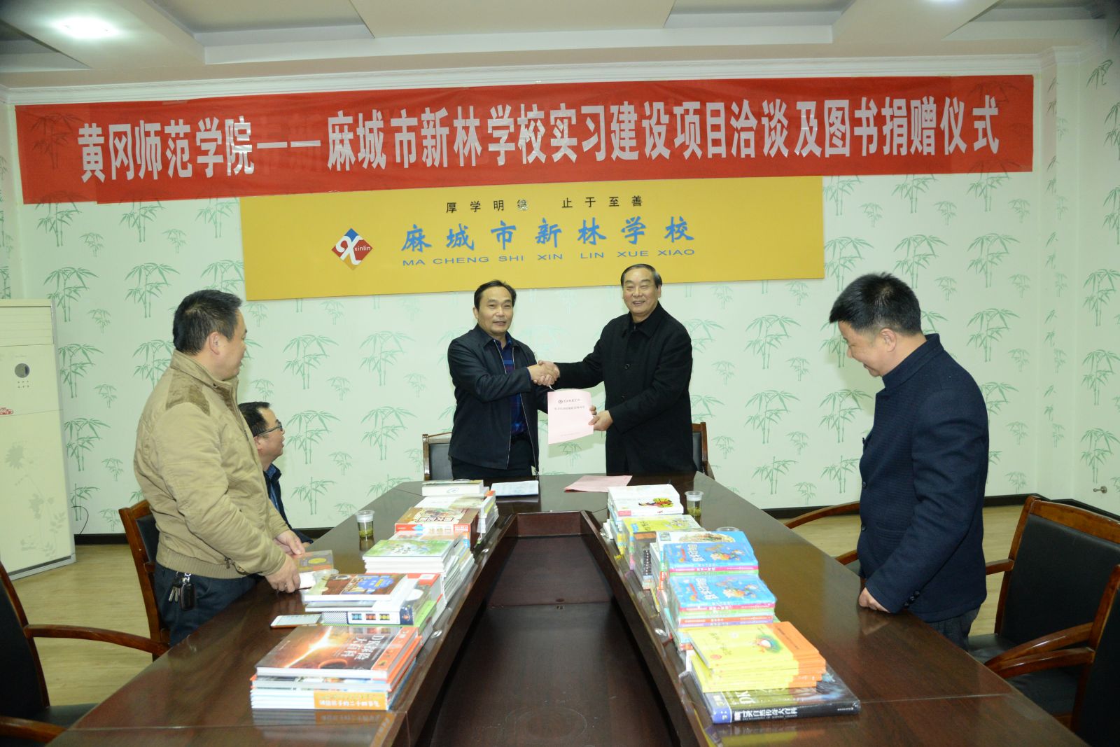 12月1日,williamhill·威廉希尔(英国)中文官网-Official Website与麻城新林公司签订实习和暑期实践支教基地协议书并向该校捐赠一批图书。公司党总支书记林永希,经理陈中文出席签约、捐赠仪式。