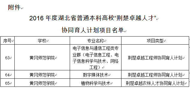 附件:2016年度湖北省普通本科高校“荆楚卓越人才”协同育人计划项目名单