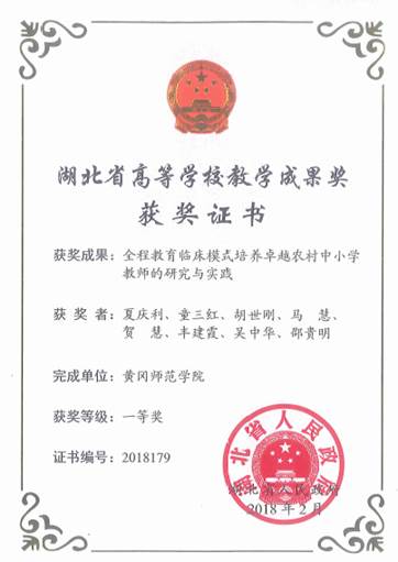 l 湖北省高等公司优秀中青年科技创新团队4个:武汉城市圈两型社会建设背景下的鄂东教育文化研究、基于云计算的数字化教育资源共享关键技术研究、 鄂东特色文化及其产业化发展战略研究、教育现代化背景下教师教育创新发展研究