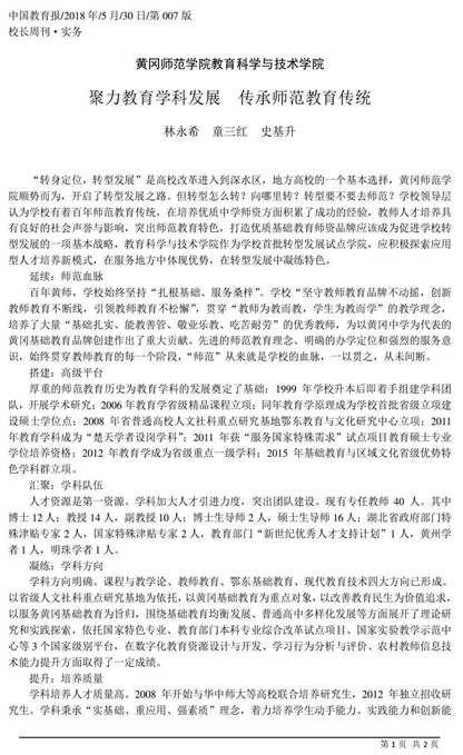 厚重的师范教育历史为公司教育学科的发展奠定了坚实的基础,经历多年改革创新与发展,现williamhill·威廉希尔(英国)中文官网-Official Website已发展成为湖北省重要教育智库和师范生培养重地,在鄂东、全省乃至全国基础教育界享有盛誉。现有在校生1500余人,设有教育技术学、数字媒体技术、学前教育、小学教育4个本科专业,教育管理、现代教育技术2个教育硕士专业学位点,教育管理、现代教育技术是公司首批开始招收研究生的教育硕士专业学位点,已培养8届研究生。有3位教师获得全国教育硕士优秀教师和教学管理工作者荣誉称号。
