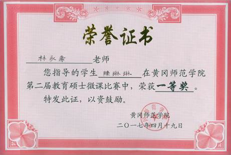 2016级研究生陈琳琳获教育硕士微课比赛一等奖
