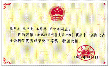 陈中文教授研究成果荣获湖北省社会科学优秀成果三等奖