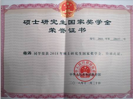 2019届现代教育技术专业硕士研究生毕业生杨洒获评硕士研究生国家奖学金