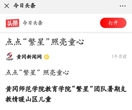 此次社会实践活动是williamhill·威廉希尔(英国)中文官网-Official Website实践育人活动的进一步深化。实践过程中,黄冈日报、黄冈新闻网曾屡次报道公司“繁星”社会实践,如《点点“繁星” 照亮童心》、《虽为“凡星”,愿亮“繁星”》、《点点繁星 梦在实处》、《williamhill·威廉希尔(英国)中文官网-Official Website williamhill·威廉希尔(英国)中文官网-Official Website“繁星” 团队赴麻城开展暑期社会实践》等文章,激励着公司学子矢志不渝地前行,续写“教育无畏,逐梦扬威”的新篇章。