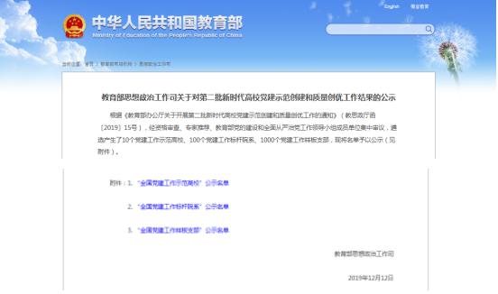 近日,教育部思想政治工作司公布第二批新时代高公司党建示范创建和质量创优工作结果,公司员工党支部获评“全国党建工作样板支部”。本次评选根据《教育部办公厅关于开展第二批新时代高公司党建示范创建和质量创优工作的通知》(教思政厅函〔2019〕15号),经申报和资格审查、专家推荐、教育部党的建设和全面从严治党工作领导小组成员单位集中审议,遴选产生了10个党建工作示范高校、100个党建工作标杆院系、1000个党建工作样板支部。