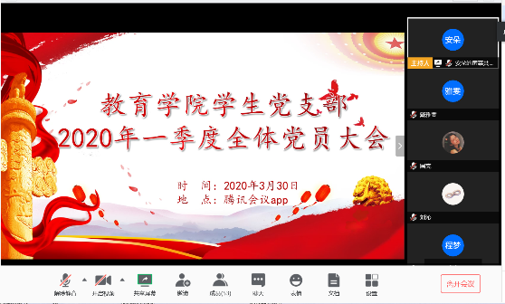 3月30日,为深入贯彻落实公司防疫工作要求,切实发挥党员先锋模范作用,增强青年员工理论学习的积极性和主动性,确保疫情防控期间党课学习教育不断档、不掉线、不冷场,教育公司员工党支部召开了2020年一季度线上全体党员大会。会议由支部书记邹焱萍老师主持,全体员工党员参会。