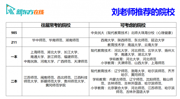 此外,刘老师还向同学们提供了教育学考研院校梯队表以及他个人推荐报考的院校等考研信息。他希望同学们对自己合理定位,正确选择报考院校和专业,积极把握调剂机会,结合自己的兴趣和实力选择报考院校及专业,按照自己目标院校的要求冲刺备考,使备考的效率最大化。