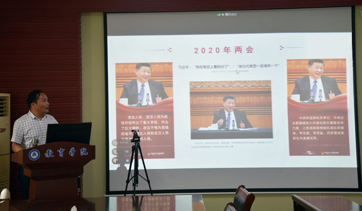 经理陈中文在会上作了《凝聚决战决胜的黄师智慧和黄师力量——学习2020全国“两会”精神的体会》的专题报告,他从两会之力量,两会之教育,两会之我们三个板块进行阐述,从宏观到中观再到微观,以两会精神指导公司的发展,具有理论的高度,分析的深度和接地气的温度。