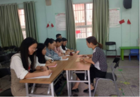 2019年10月10日,员工党支部组织开展“不忘初心,牢记使命”主题教育应知应会考试。员工党支部书记邹焱萍老师带两位员工党员前往黄冈市实验幼儿园,慰问正在实习中的党员,并送主题教育试卷,同时组织到场党员进行“不忘初心,牢记使命”主题教育应知应会考试。