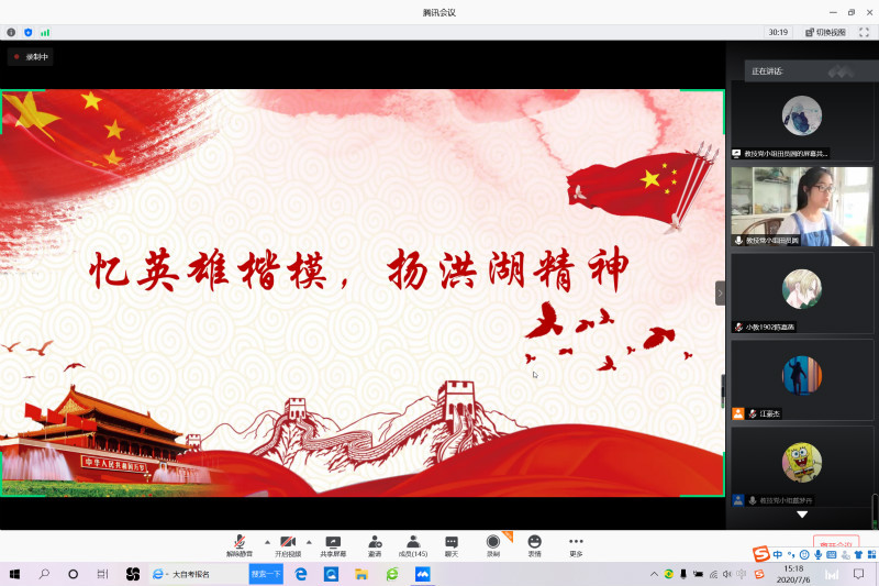 7月6日下午,员工党支部在线上开展 “红色记忆”专题党课活动,活动由员工党支部书记邹焱萍老师主持,全体员工党员以及120余名团员在线听课。