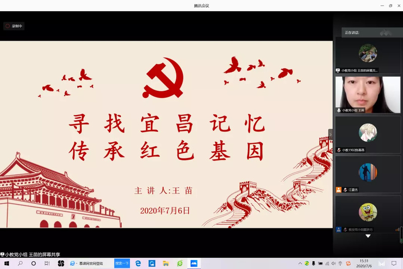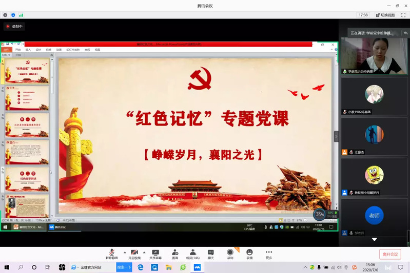 7月6日下午,员工党支部在线上开展 “红色记忆”专题党课活动,活动由员工党支部书记邹焱萍老师主持,参加活动的有全体员工党员以及120余名通过到梦空间报名参加在线听课的团员。