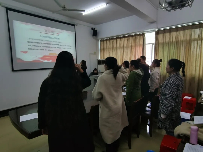 会议伊始,邹焱萍老师宣读基层党委批准的预备党员转正人员名单。会上,肖丹丹等9名预备期满的同志依次向大会汇报了在预备期内一年来的思想、学习、工作、生活等情况,并客观地认识了自己的缺点与不足。接着由入党介绍人向全体与会党员介绍该同志在预备期间的培养考察情况,并就其能否如期转正表明态度。参会同志认真倾听,并提出建议与意见,转正党员就与会同志提出的意见和建议表明态度及今后的改进措施。会议对他们的申请进行了严格审查与讨论,并采用无记名投票方式进行表决。根据会议讨论表决结果:大会认为,肖丹丹等9名预备党员符合正式党员的条件,一致同意肖丹丹等9名预备党员按期转正。随后,全体党员一同重温入党誓词。