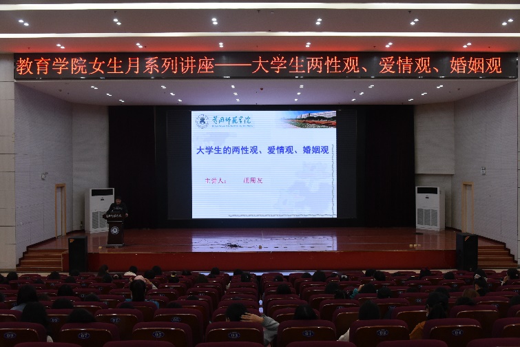 胡书记围绕两性观、爱情观和婚姻观三个问题展开了讲座,他以自身举例生动形象地讲述了些生活中的趣事,以此告诫大家不要在诱惑面前迷失方向,提醒大家要慎重选择另一半,避免犯不必要的错误。他希望同学们在以后的学习和生活中能够正确对待恋爱问题,强大自我内心,树立正确的婚恋观。