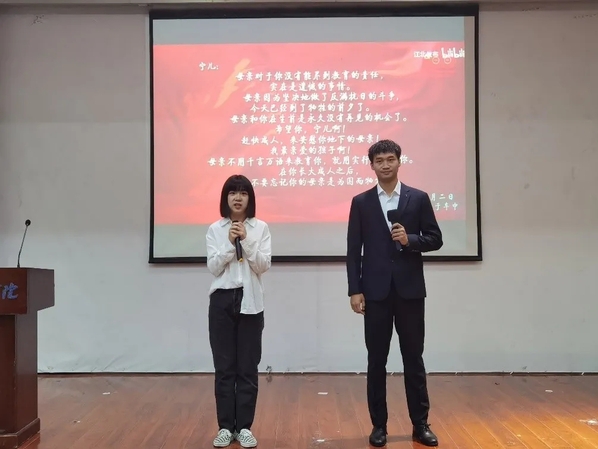 教技1901班刘文龙、教技1902班张纯蕖围绕“铁骨铮铮慈母心,红色家书证党情”对赵一曼女士的先进事迹与家书娓娓道来,引用赵一曼女士的“未惜头颅新故国,甘将热血沃中华”,呼吁广大青年树立坚定信念信仰,积极投身于实现中华民族伟大复兴中国梦的实践中。