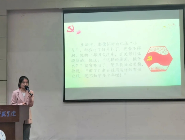 学前1803班喻雪晴为我们带来了她对彭德怀故事的感悟,彭德怀把他刚直的一生献给了革命,一直秉承着“四个不准”原则。