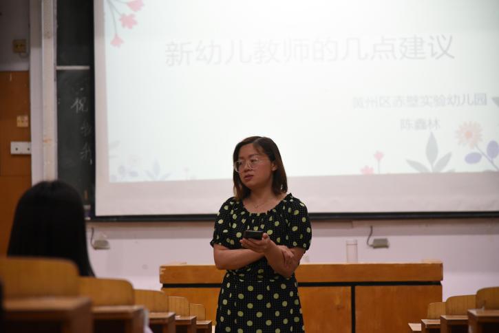 线下宣讲会分别由学长黎满意学姐陈鑫林为大家讲解创业幼儿园管理经验给新幼儿教师建议等相关知识。他们主要从工作中会遇到的问题与心态的调整、创业相关的问题与不忘初心,坚守教育这三方面为同学们答疑解惑;建议大家走上工作岗位后要尽快熟悉班级环境、做好班级的保教工作、树立安全第一的观念、做好家长工作等。