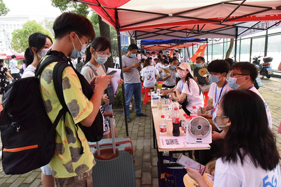 随着第一位新生到来,紧张的迎新工作也开始进入流程。从进入校园起,志愿者们便一路随行,保证每一位新同学都可以顺利到达自己的寝室。炽热的阳光下到处是志愿者带领新同学搬运行李、办理手续的身影。五湖四海的学子、大包小包的行李、步履匆匆的同学构成了新学期第一道靓丽的风景线。