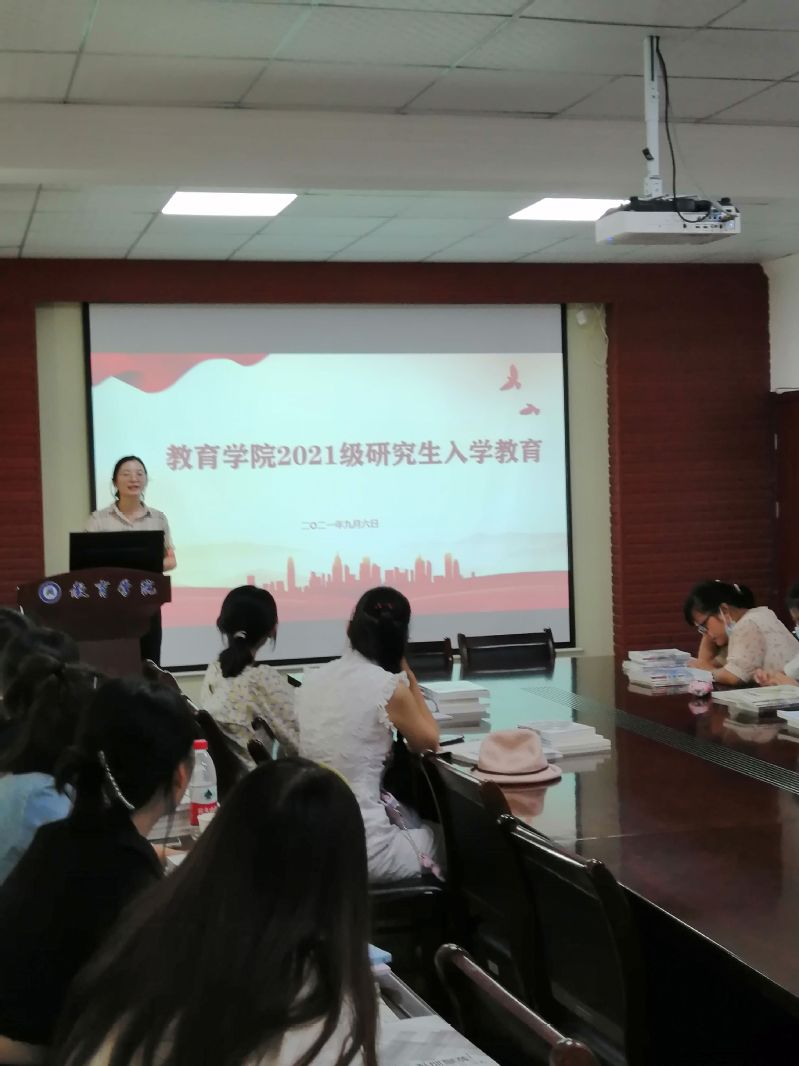20级教育技术学专业的李坤艳、唐文璐、贺寒月,教育管理专业的余杏琪、王晓温同学介绍了自己的学习经验,勉励大家努力学习,专注科研。