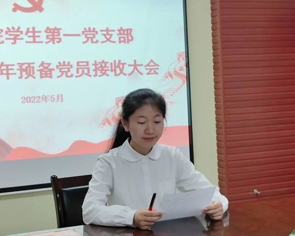 首先,钟老师报告出席会议的党员人数,提出会议的议题及会议的具体要求。会议正式开始,发展对象分别从入党的动机、对党的认识、本人履历等方面向党组织进行汇报,两位入党介绍人介绍发展对象相关情况,并对其能否入党表明意见。随后,与会党员进行讨论,采取无记名投票表决的方式进行表决。表决结束后,7位新发展预备党员分别向大会表达了自身存在的问题以及坚定的入党决心,努力的向党组织靠拢。