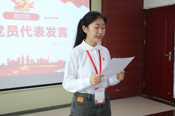 熊乐瑶作为新预备党员代表发言,她表示,“自己将本着全心全意为人民服务的宗旨,充分发挥党员的先锋模范作用,始终保持党员的先进性;也将树立终身学习的观念,利用自己所学的科学文化知识更好的服务人民,奉献社会。”