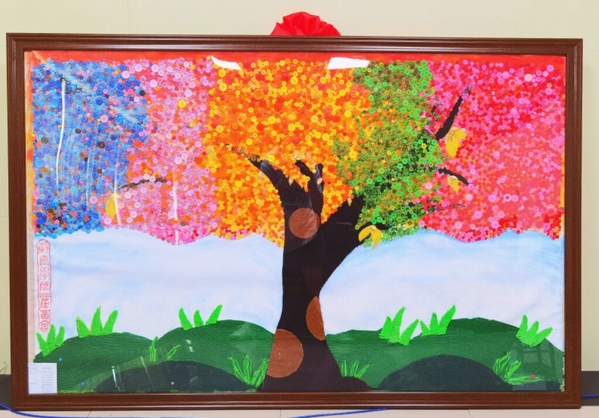 这幅作品名为《春华秋实》,作品中的每一粒扣子代表每一位学子,一枝一叶汇聚成郁郁葱葱的扣子树。在williamhill·威廉希尔(英国)中文官网-Official Website这棵大树的养育恩泽下,正散发着属于自己的不同的光芒。大树颜色蓝到红,寓意从橙黄橘绿到春华秋实,老师们立德树人,润物无声;学子们青出于蓝,红胜似火。草木深深,思念沉沉,学子们对williamhill·威廉希尔(英国)中文官网-Official Website的深情眷念化作一缕缕丝线,在未来平凡的日子里生根发芽,茁壮成长。
