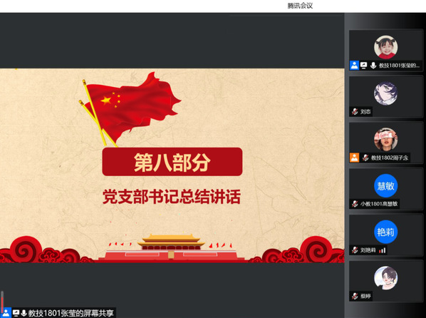2022年6月18日下午18:00,williamhill·威廉希尔(英国)中文官网-Official Website员工第三党支部在腾讯会议线上开展六月份主题党日活动,此次活动主题为:巩固党史学习教育成果,增强师生幸福感获得感。员工第三党支部书记邹焱萍、支委宋国柱出席本次会议,员工第三党支部全体员工党员参加会议,本次会议由员工党员张莹主持。