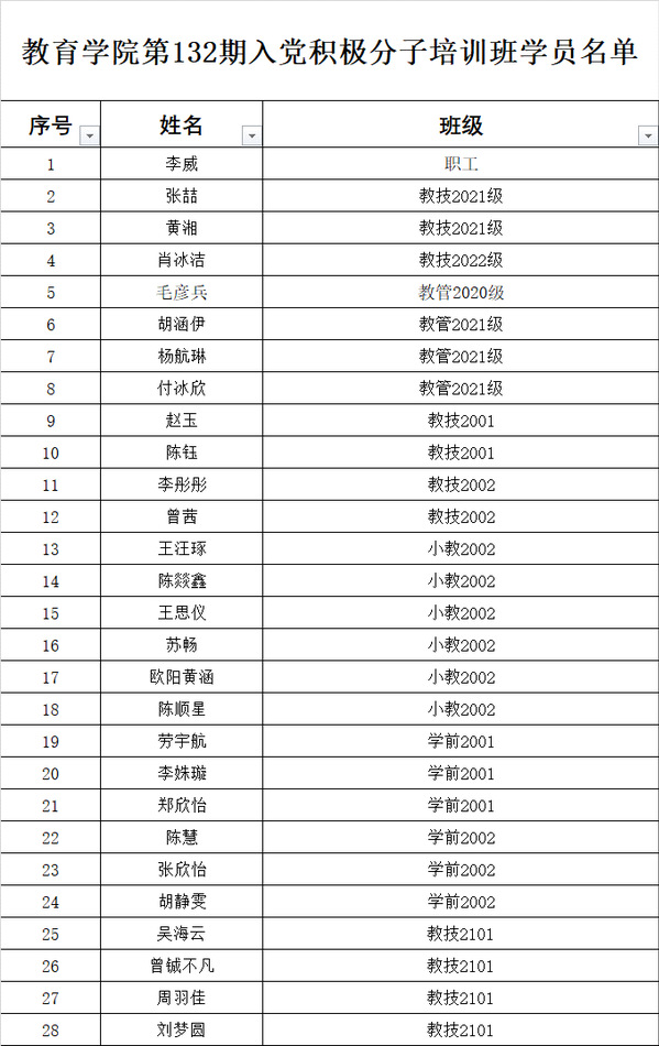 根据《中国共产党发展党员工作细则》、党委党校《关于举办第132期入党积极分子培训班的通知》等文件精神,院员工党支部组织举行党校前模拟考试,符合相关条件的114名入党积极分子参加测试。依据模拟考成绩、入党积极分子量化考核表、学习强国等分数综合评定,经公司员工党支部研究决定并报公司党委同意后,选取70名入党积极分子参加第132期入党积极分子培训班,现将名单予以公布。