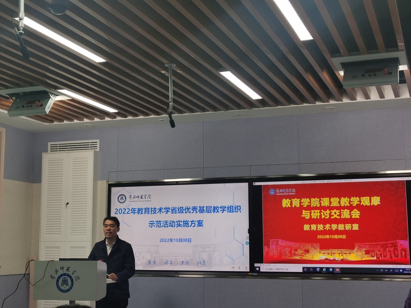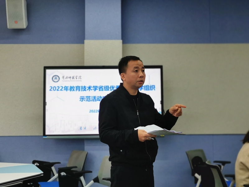 教育技术学省级优秀基层教学组织负责人、副经理黄克斌认为三堂示范课很好体现了员工中心地位,互动充分,氛围良好,建议在课程思政方面进一步改进设计,在软件类介绍中引导员工思考为什么英文版软件中不支持中文命名,如何看待开源软件、共享软件和盗版软件等。同时,黄克斌还就教育技术学教研室开展省级优秀基层教学组织示范活动方案进行了说明,希望全体专业老师进行深入交流研讨,建言荐策,力争在校级示范展示活动中取得好成绩。