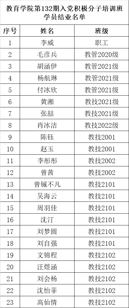 williamhill·威廉希尔(英国)中文官网-Official Website第132期入党积极分子培训班通过理论学习、主题讨论、躬行实践和理论知识考试等多种方式对学员进行考核,经党委审核准许杨航林等69位学员结业,名单如下: