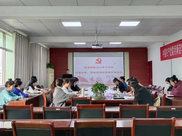 会议第一项,全体与会人员奏唱国歌。会议第二项,由员工党员阮亚宣读培训学员名单以及分组情况,并对本次培训方案及课程要求作出讲解。会议第三项,学员代表发言。首先,由发展对象培训班学员代表学前2001班熊泽纯发言:作为发展对象要时刻保持思想上的先进性,行动上的积极性,做到心中有党,将党员的高标准严要求谨记于心,并做出以下承诺:“认真学习理论知识,保质保量的完成学习任务,秉承黄师精神,起模范带头作用。”随后,由预备党员培训班学员代表小教1902班赖信孜发言:要利用党的科学理论知识提高自身道德修养,树立正确的人生观、价值观和世界观。在学习期间,端正学习态度,提高思想觉悟,把政治追求和实际行动有机统一起来,努力把自己培养成符合时代要求的高素质人才。