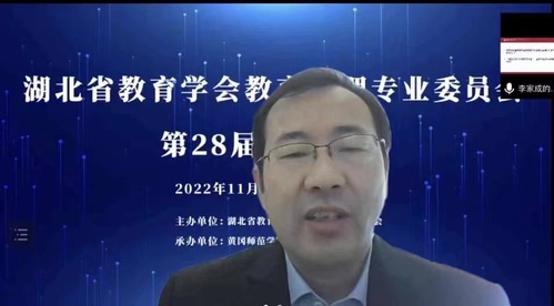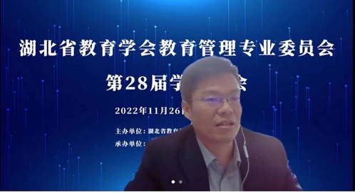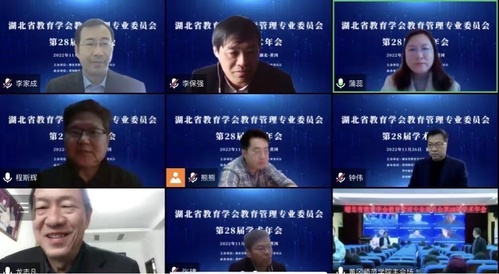 (通讯员吴晶)2022年11月26日(周六),湖北省教育学会教育管理专业委员会第二十八届学术年会在williamhill·威廉希尔(英国)中文官网-Official Website隆重召开,本次会议由湖北省教育学会教育管理专业委员会主办,williamhill·威廉希尔(英国)中文官网-Official Website、鄂东教育与文化研究中心和华中师范大学中国教育管理研究中心承办,会议采取“线上+线下”模式进行。黄冈师范公司党委书记陈向军、党委副书记陈朝阳、湖北省教育学会常务副会长兼学术委员会主任程斯辉教授、 湖北省教育学会教育管理专业委员会理事长、华中师范大学中国教育管理研究中心主任蒲蕊教授、湖北开放大学副董事长宋移安、华东师范大学上海终身教育研究院执行副经理李家成教授、武汉大学教育科学研究院李保强教授,以及华中科技大学、华中师范大学、中南民族大学、湖北科技公司、湖北第二师范公司等20余所高校的专家学者参加了会议。此外,出席会议的还有湖北省教育管理专业委员会的各位副理事长、省内相关市县教育局局长、教科院经理、中小学董事长等。专家学者和师生300余人齐聚云端,共话中国式现代化与教育治理。大会开幕式由党委副书记陈朝阳主持。