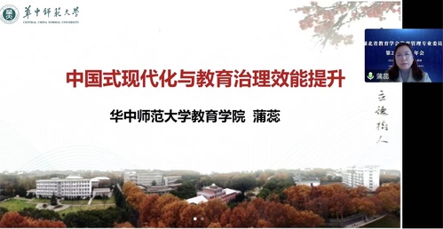 湖北省教育管理专业委员会理事长、华中师范大学中国教育管理研究中心主任蒲蕊教授作了题为”中国式现代化与教育治理效能提升”的主旨报告。