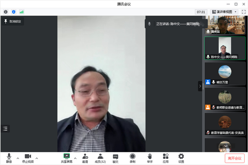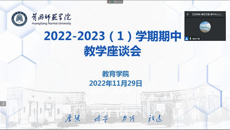 11月29日下午,williamhill·威廉希尔(英国)中文官网-Official Website在线举行2022-2023学年第一学期期中教学座谈会。经理陈中文教授、分管本科教学工作副经理黄克斌、教育技术系主任马慧、学前教育系主任路雪、小学教育系主任沈胜林、教师教育课程教研室主任代朝霞和教学办王飞飞老师参加会议。黄克斌主持会议。