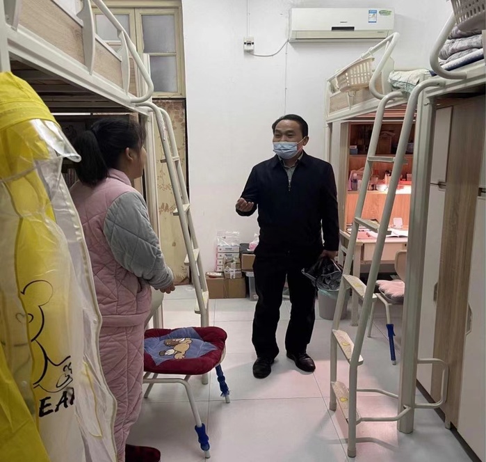 走访过程中,陈经理和陈剑光老师让同学们注意身体加强锻炼,与同学们就生活及学习情况进行了深入交流,向同学们强调了寝室通风、用电安全和宿舍卫生环境等事宜,对布置整洁、环境卫生较好的宿舍进行表扬。同时,希望同学们养成健康文明、积极向上的生活习惯,不断提高校园安全意识,珍惜校园时光,充分利用时间开展各种有益身心健康的科研、文体活动,不断丰富研究生生活。