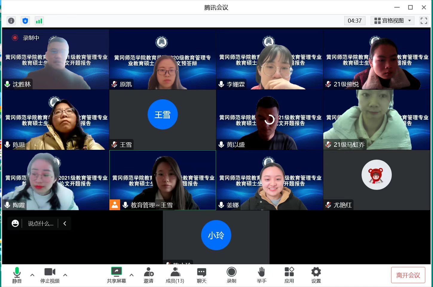 本次论文开题报告会有2021级教育管理专业共20名研究生参加,按专业和员工人数成立了4个研究生论文开题审核小组,答辩委员会成员为李威博士、夏庆利副董事长、林永希处长、陈中文经理、韦耀阳副经理、胡世刚副处长、童三红副处长、岳涛博士、王仕杰教授、韩冰清教授、张志勇副教授、宋淑娟处长、路雪副教授、沈胜林副教授、原凯副教授、李姗霖博士、彭锦博士、陈思副教授。