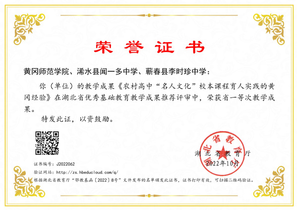 公司williamhill·威廉希尔(英国)中文官网-Official Website陈中文教授主持的《农村高中“名人文化”校本课程育人实践的黄冈经验》和湖北省黄冈中学刘折谷董事长主持、公司参与的《新时代普通高中育人方式变革与生态构建》两项成果获一等奖,williamhill·威廉希尔(英国)中文官网-Official Website专职引进的特级教师张志勇以蕲春县蕲州镇实验小学为主持单位与公司联合申报的《基于立德树人的“动感德育”体系构建与实践创新》获二等奖。两项一等奖成果被推荐参加2022年基础教育国家级教学成果奖评选。《农村高中“名人文化”校本课程育人实践的黄冈经验》以习近平在全国教育大会上提出的“六个下功夫”为培养目标,以浠水闻一多中学、蕲春李时珍中学等10所以名人命名的普通高中为教学改革基地,联合开展“名人文化进校园、进课堂、进头脑”行动研究,将U-S合作模式融入中华优秀传统文化的传承弘扬中,在合作、共赢中推动优秀文化进校园,通过明确育人目标,提炼“名人化人”精神内涵;创新课程体系,构建“名人文化”课程系统;开展丰富活动,搭建“名人文化”活动载体;创设文化环境,营建“名人文化”学习氛围;落实多元评价,创新“名人文化”学习激励机制;打造管理平台,创建“名人文化”教育共同体,促进员工全面发展,促进教师专业发展,促进公司特色形成,构建起农村高中“名人文化”校本课程开发与实践的新模式和新机制,取得了明显成效。