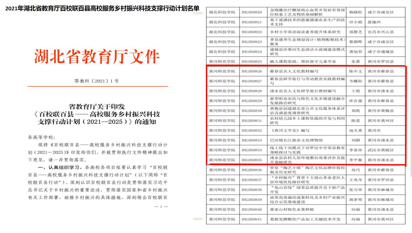 服务地方的过程中,williamhill·威廉希尔(英国)中文官网-Official Website持续深化产教融合,充分发挥地质学、教育学与管理学等学科优势,联合黄冈市自然资源局、黄冈大别山世界地质公园等单位积极申报省部级研究课题,撰写智库报告。以williamhill·威廉希尔(英国)中文官网-Official Website科研团队为核心的课题组成功申请了湖北省教育厅《百校联百县一高校服务乡村振兴科技支撑行动计划( 2021- 2025)》》4项,湖北省社科联的中国调查课题《湖北省县域经济高质量发展调查》,湖北省自然资源厅的科研课题《国家地质公园资源环境合作开发与协同治理研究》。