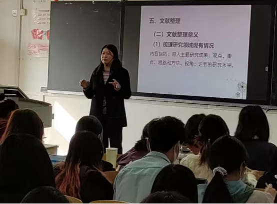 督导组一行第二节课在博学楼404教室听取了陈俊芳老师面向应数202001- 02班主讲的《教育科学研究方法》课程“文献整理”章节内容。