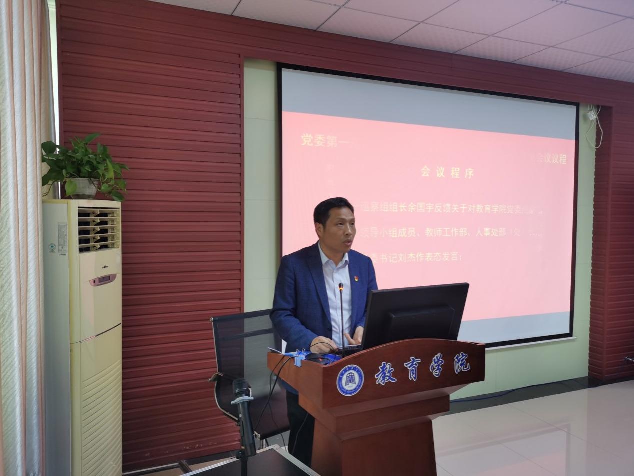 3月30日下午,公司党委第一巡察组向公司党委反馈巡察情况的意见会在致远楼616会议室召开,党委第一巡察组组长余国宇反馈关于对公司党委巡察情况的意见;公司党委巡察领导小组成员、教师工作部、人事处部(处)长徐峰就抓好整改工作提出要求,公司党委书记刘杰主持反馈会并做表态发言。