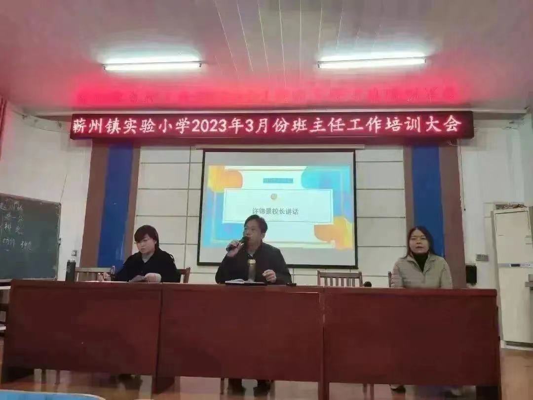 2023年3月29日,蕲州实小全体班主任齐聚电教楼会议室,如期举行每月一次的班主任工作培训会。实习生梁娟、张静参加了此次三月份的班主任工作培训会。许锦景董事长在本次班主任培训会上,对前期班主任工作进行了简要点评,将日常看到的好坏现象作了细致分析,要求班主任要做班主任工作的有心人,要关注细节、讲规范。着重强调了班主任老师要严守师德,要关心员工的生活,关注员工的成长,要教育员工成为文明守纪、阳光自信的好少年。