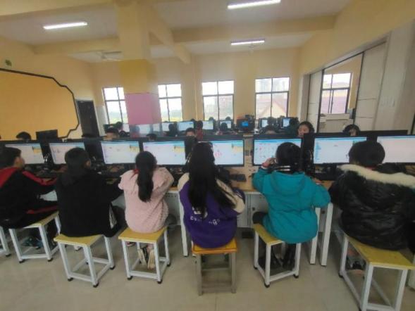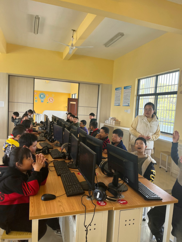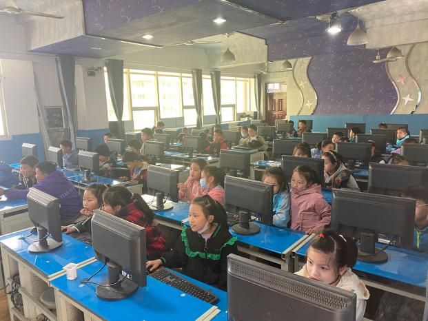 王倩和熊维云投入正常课堂教学,为三四年级员工讲解计算机的发展简史,区分计算机硬件和软件,及利用WPS制作自己的课程表。
