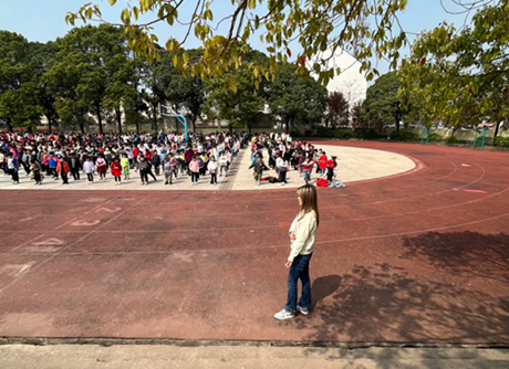 两位实习生参与员工升旗,大课间体操活动等