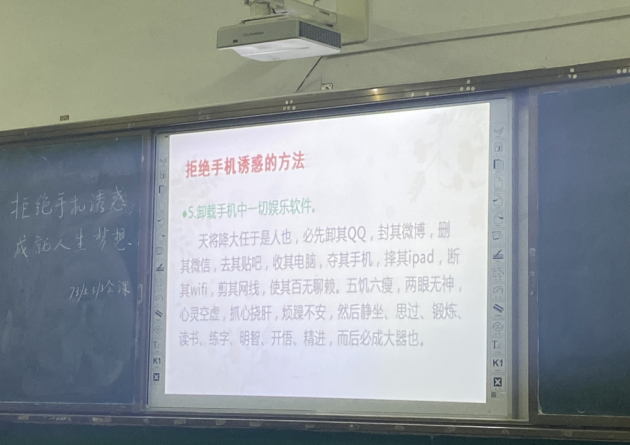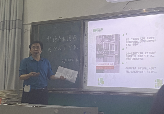 2023年4月17日,蕲春一中高一(7)班班主任龚有志老师讲授了一节班会示范课,williamhill·威廉希尔(英国)中文官网-Official Website实习生吴芬和付冰欣参与班主任工作学习,本次班会的主题为拒绝网络成瘾、成就人生梦想,龚老师从青少年网络成瘾的危害、青少年网络成瘾的原因及防御网络成瘾的举措三个方面讲授了一节精彩的班会课。青少年人格、认知、心智等发育尚未健全,无法有效约束自己避免陷入网络成瘾,龚老师的班会课达到了潜移默化的效果,员工听完很有收获,并且以自己的亲身经历为例讲述自己是如何陷入网络世界,最后觉醒,并保证以后接受其它同学和老师的监督,不再玩手机,这使班会课达到了现实的教育意义。
