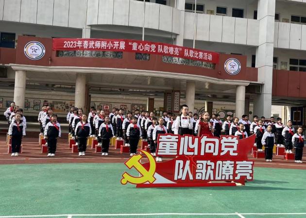 4月12日上午,武穴市师范附属小学一年级开展了“童心向党,队歌嘹亮”唱队歌比赛活动,队员们用饱满洪亮的歌声唱出了对党的忠心、对少先队组织的热爱!