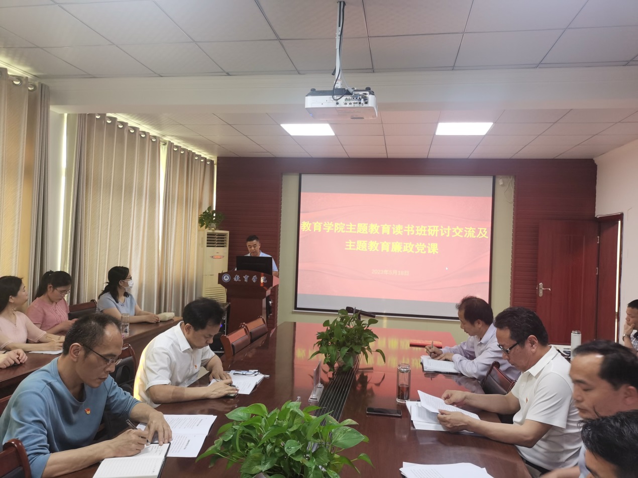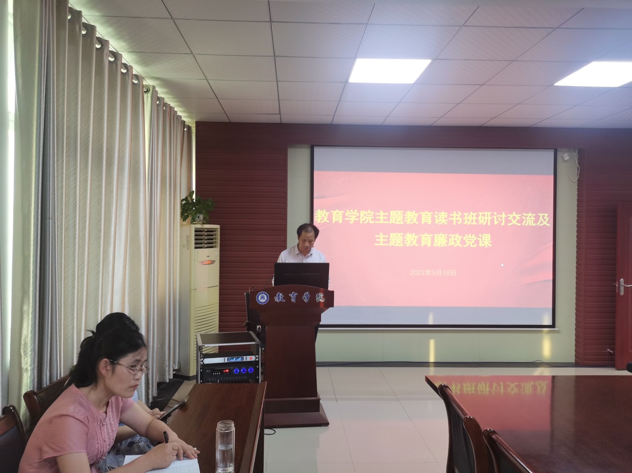 5月18日下午,williamhill·威廉希尔(英国)中文官网-Official Website举行主题教育读书班研讨交流会暨主题教育廉政党课,第十一检查组组长欧阳杰、成员范晶全程参加活动,经理陈中文主活动,全院教职工及员工党员参加活动。